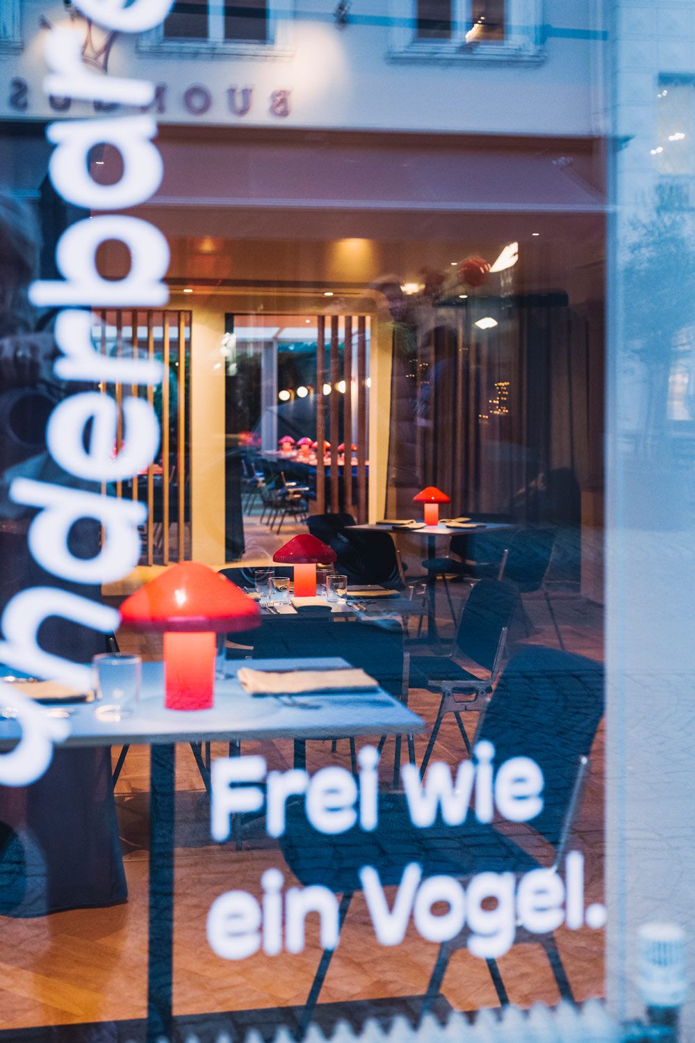 Der wohl größte Unterschied zum Küchentanz liegt nach Gehrer darin, „wie es sich anfühlt“. Während das Stammhaus in einem urigen Wirtshaus situiert ist, verfolgt das Ibon optisch eine zeitgemäße Linie: Knallrote Bistrotische mit dazu passenden Lampen treffen auf königsblaue Bänke und Stühle. Insgesamt eine moderne, etwas anspruchsvollere Ergänzung zum Tun der Familie Gehrer. Und eine spannende Neueröffnung für die Bregenzer Innenstadt.