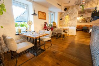 Touristen verirren sich wohl kaum in die Donaustadt. Daher zählt das Preis-Leistungs-Verhältnis im „Fat George“ mit Sicherheit zu den besten in Wien. Beachten sollte man bei einer Reservierung, dass sich Restaurant und Gasthaus mit demselben Namen nicht an derselben Adresse befinden. Beim Wolfsbarschfilet mit Blattspinat, Verjus-Beurre-blanc und Pinienkernen kommt die Küche in Fahrt, beim rosa gebratenen Kalbstafelspitz mit Erdäpfel-Baumkuchen wird die Pflicht erfüllt. Für die Kür – sprich das Dessert – gibt’s es dann die Höchstnote: Die Sauerkirschen, umhüllt von Vanillecreme, bereiten zum Finale Genuss.